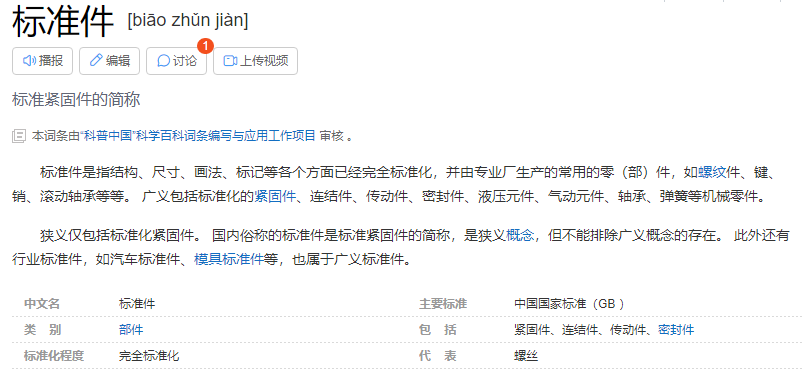 *一層含義:軸承是標準件。啥叫標準件?來,咱們看看百度百科怎么說?